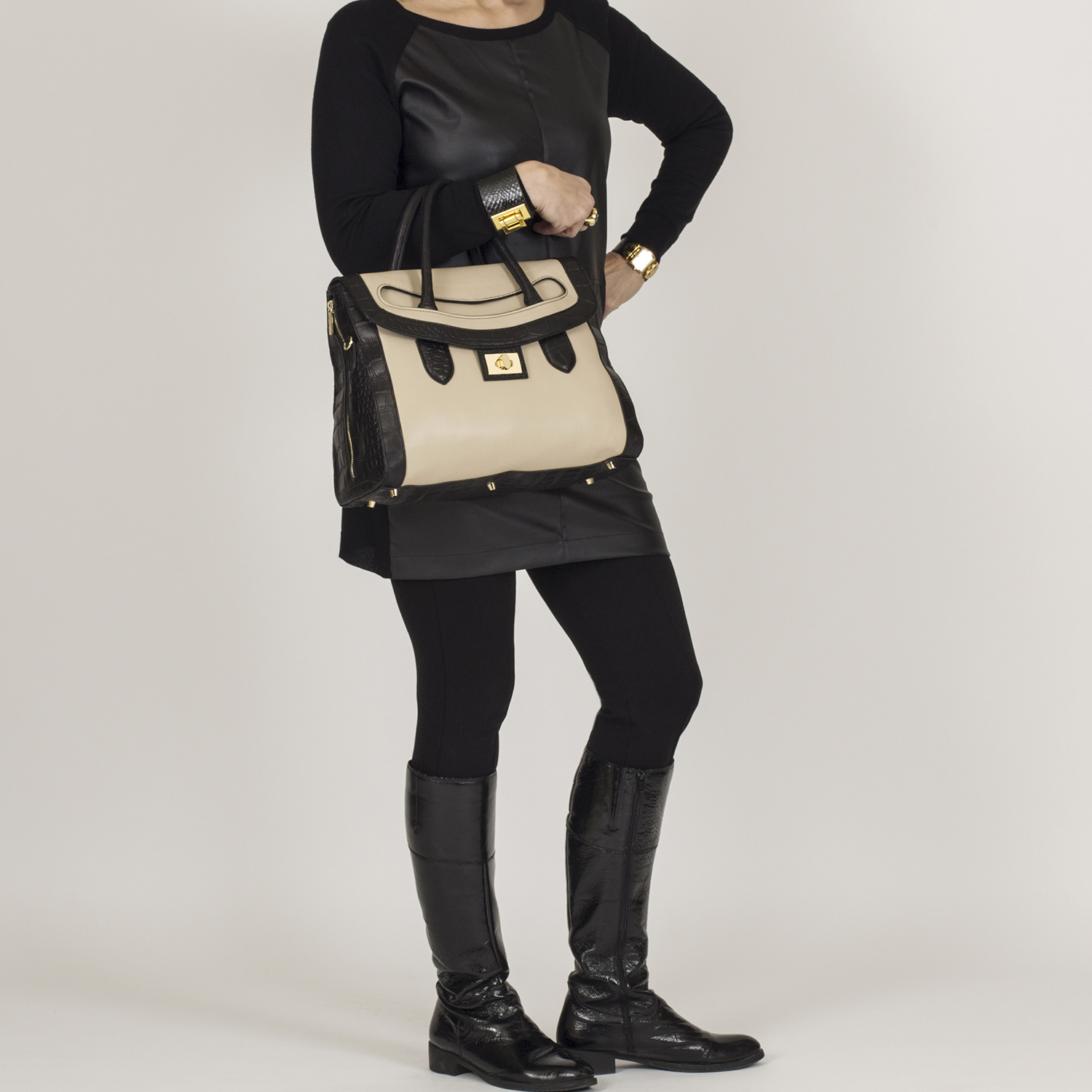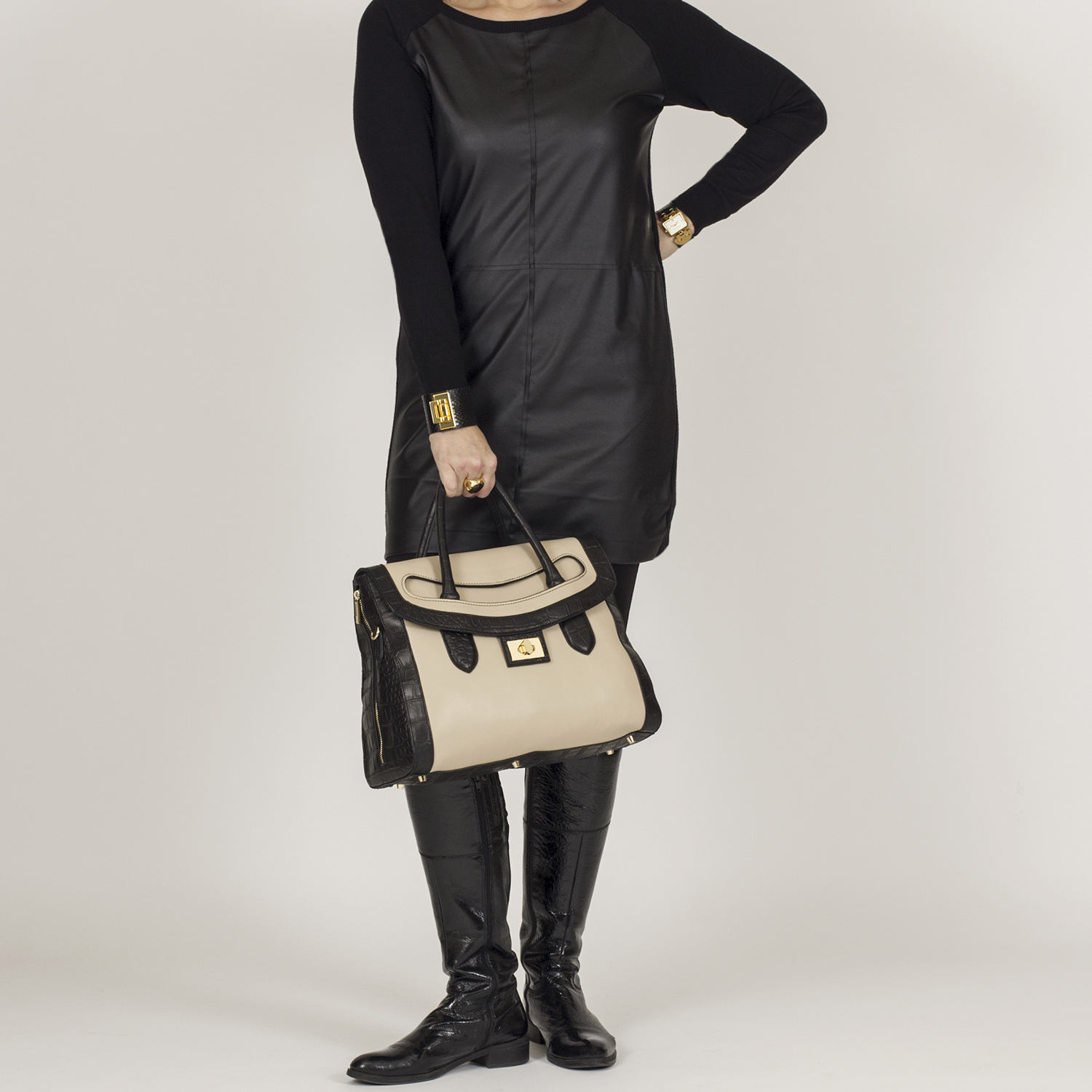 * Farbe: Bicolor beige mit schwarz.